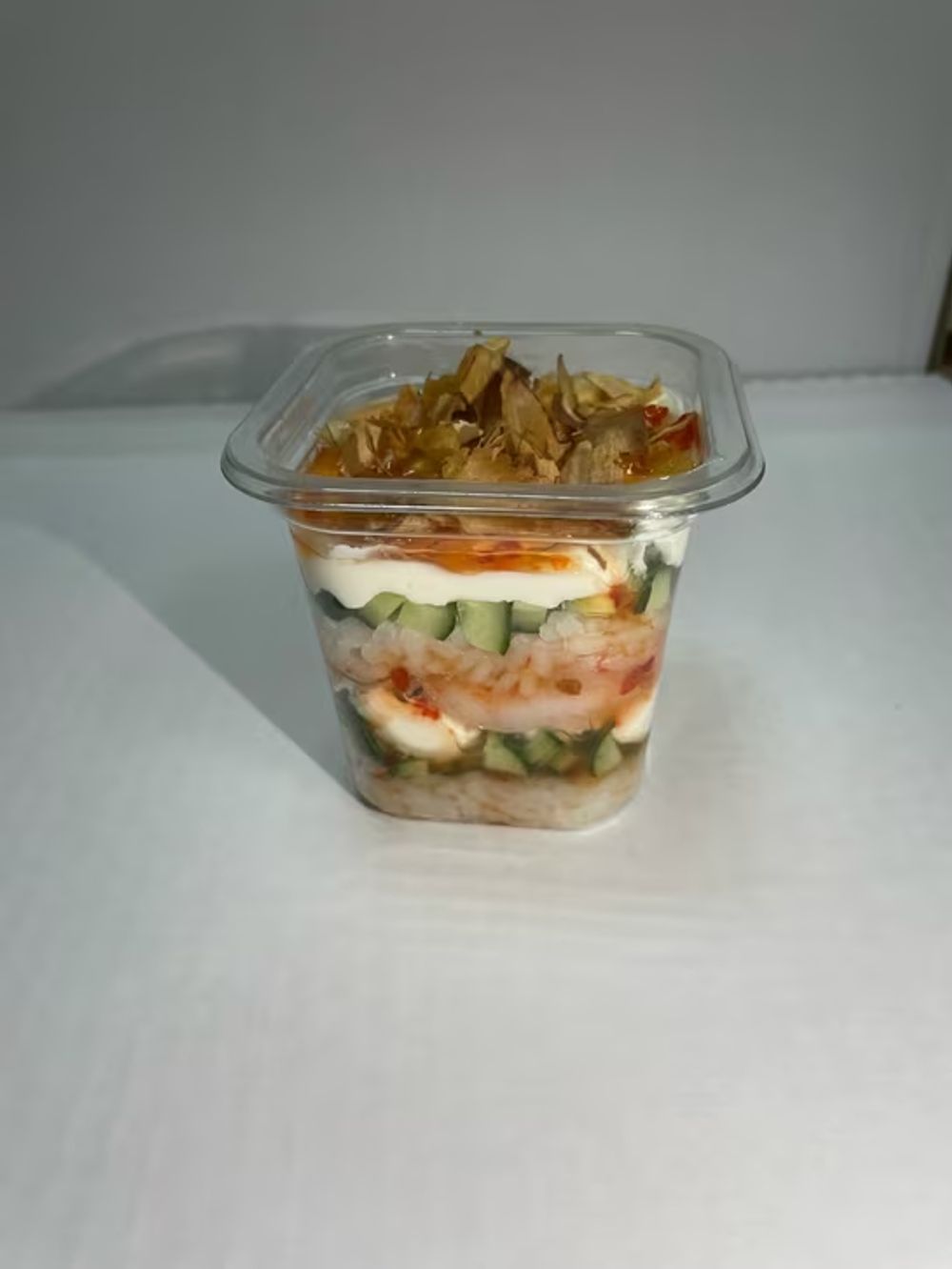 Рис, огурец, свит чили, творожный сыр, креветки, стружка тунца
