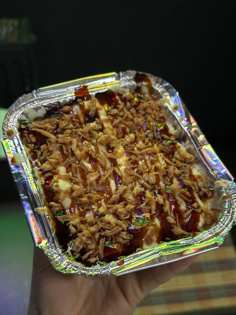 рис, курица, томат , белый соус, сыр моцарелла, унаги соус, лук криспи